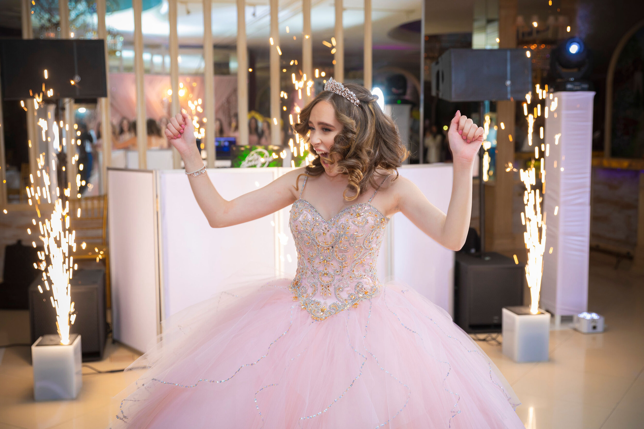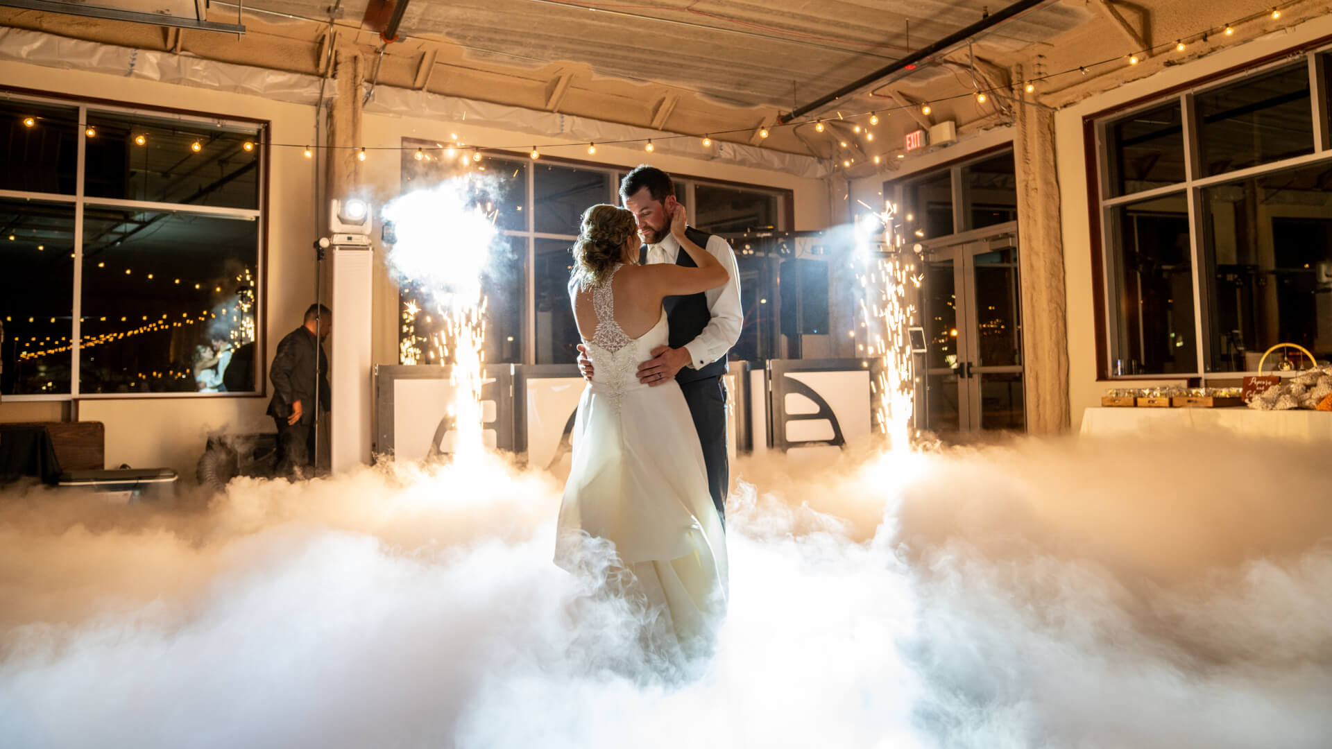 sound, lighting, photo-booths, digital displays, and special effects (e.g., confetti cannons,